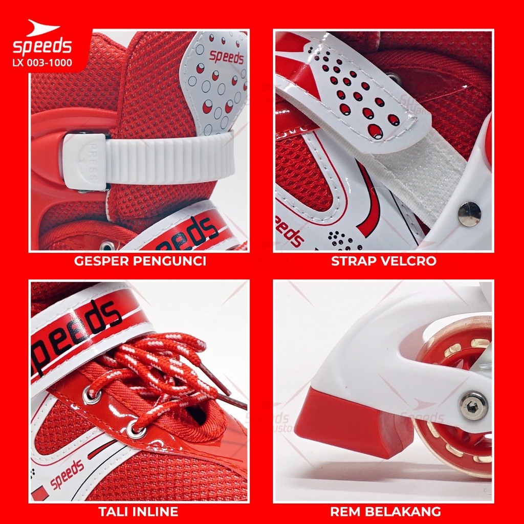 SPEEDS Sepatu Roda untuk Anak dan Dewasa Inline Skate Full Karet PU Laki-Laki Perempuan 003-1000