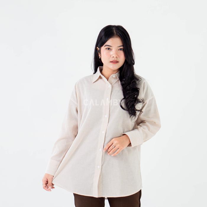 Kemeja Cala Stripes (Oversize) - Calamby - Maroon, Medium (Ld 120)
