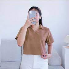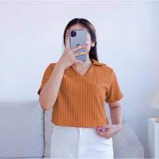 paket 3pcs baju crop lengan pendek bebas pilih warna baju atasan wanita bahan knit hornet premium model kekinian polo sh