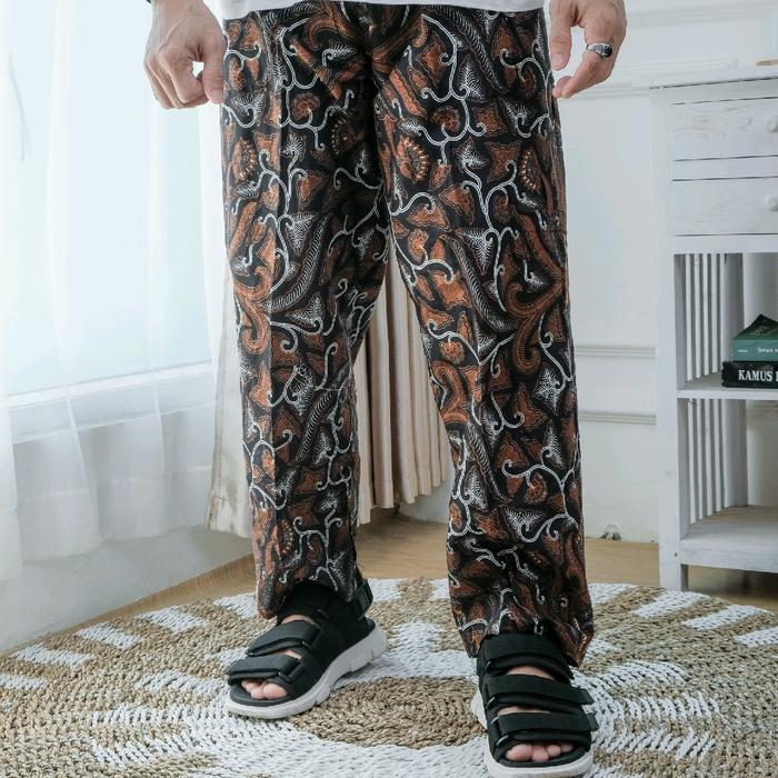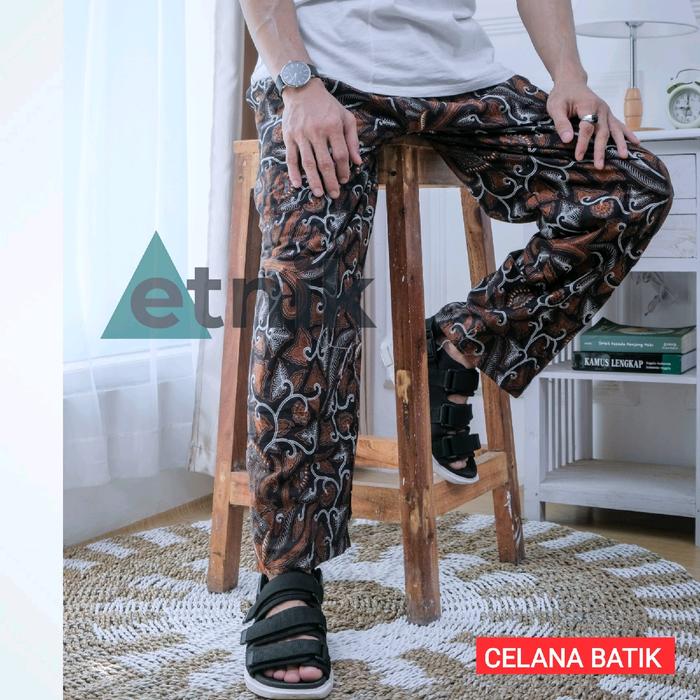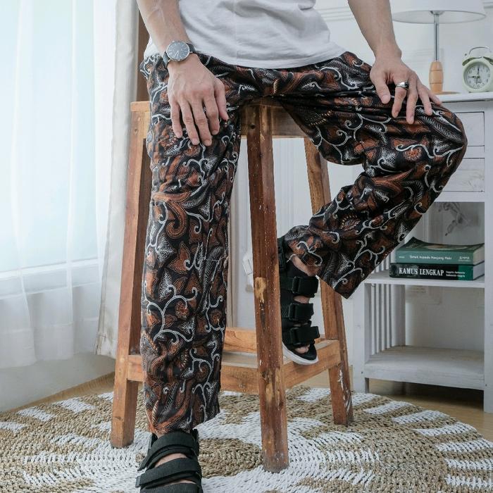 Celana Katun Panjang Batik Pria Wanita Karet - Coklat, L