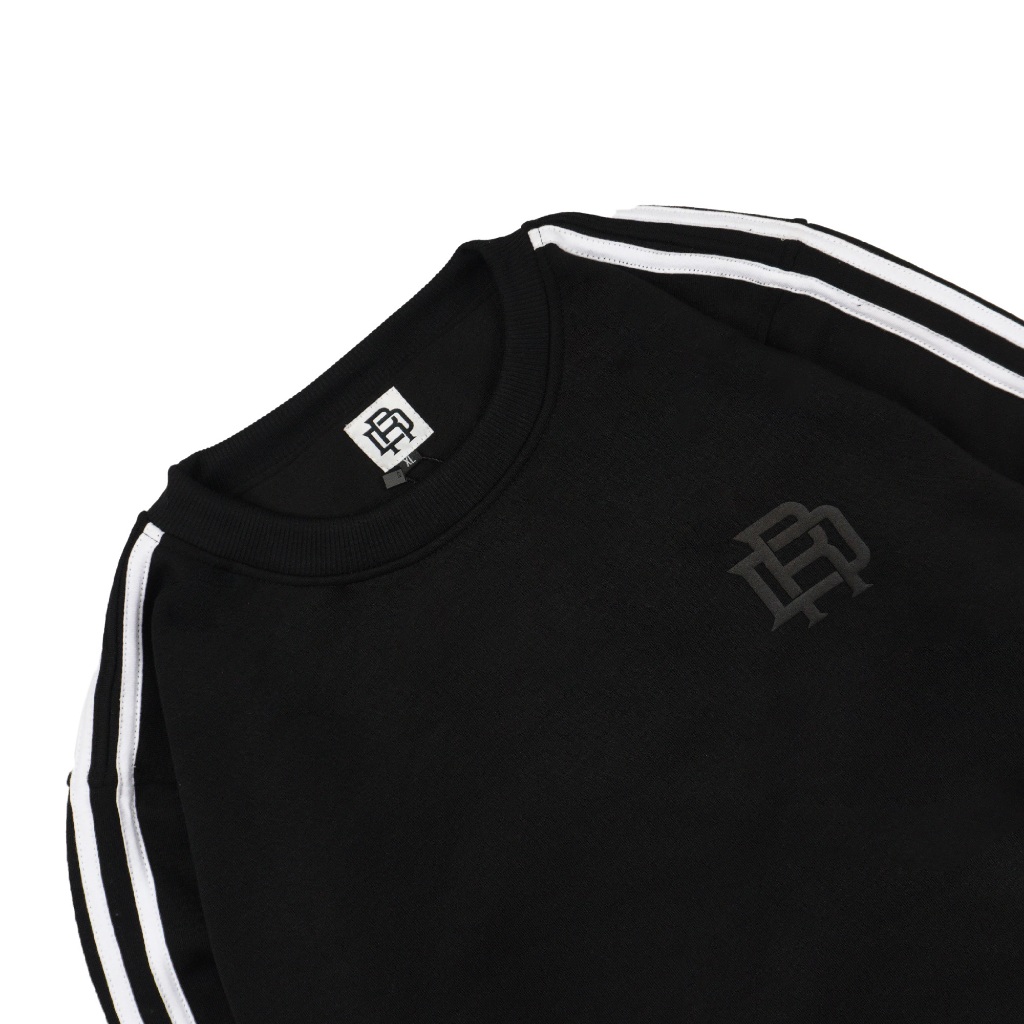 Dezirose Sweater Crewneck Linea Two Strip Logo Pria Wanita Distro Fleece Tebal Premium - Black Terjangkau