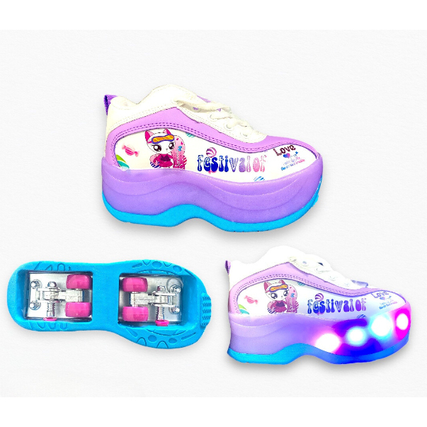 Sepatu Roda LED karakter anak Roda 4 / Roller Shoes 4 Roda LED Karakter Anak / Sepatu Roda 2in1 / Sepatu roda anak