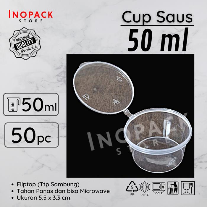 TEMPAT SAOS PLASTIK 50ML THINWALL/CUP SAMBAL/CONTAINER SAUS FLIPTOP - GROSIR 10