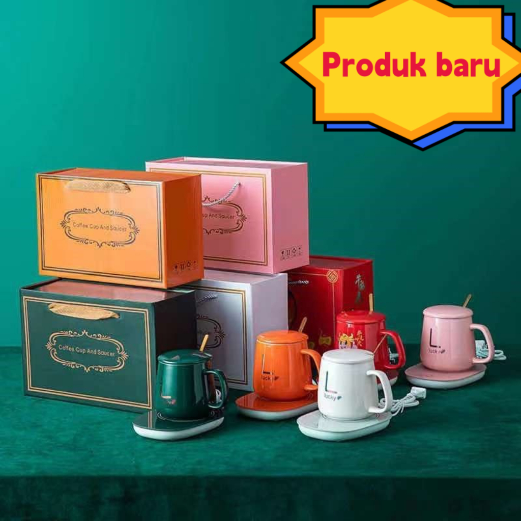 Mug Cangkir Gelas Listrik Pamanas Penghangat Minuman Kopi Susu Warmer Elektrick Keramik Gelas set hadiah suvenir kado pernikahan hampers lebaran
