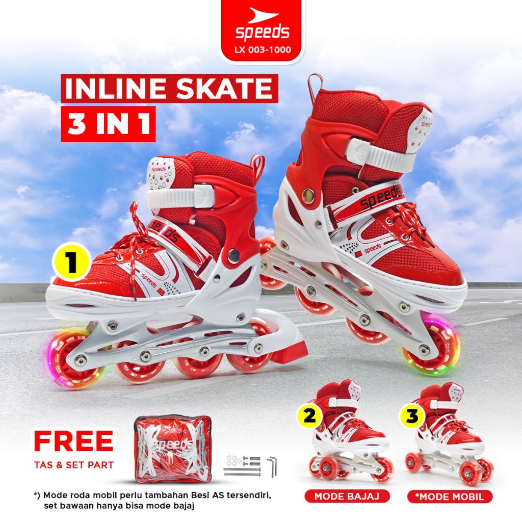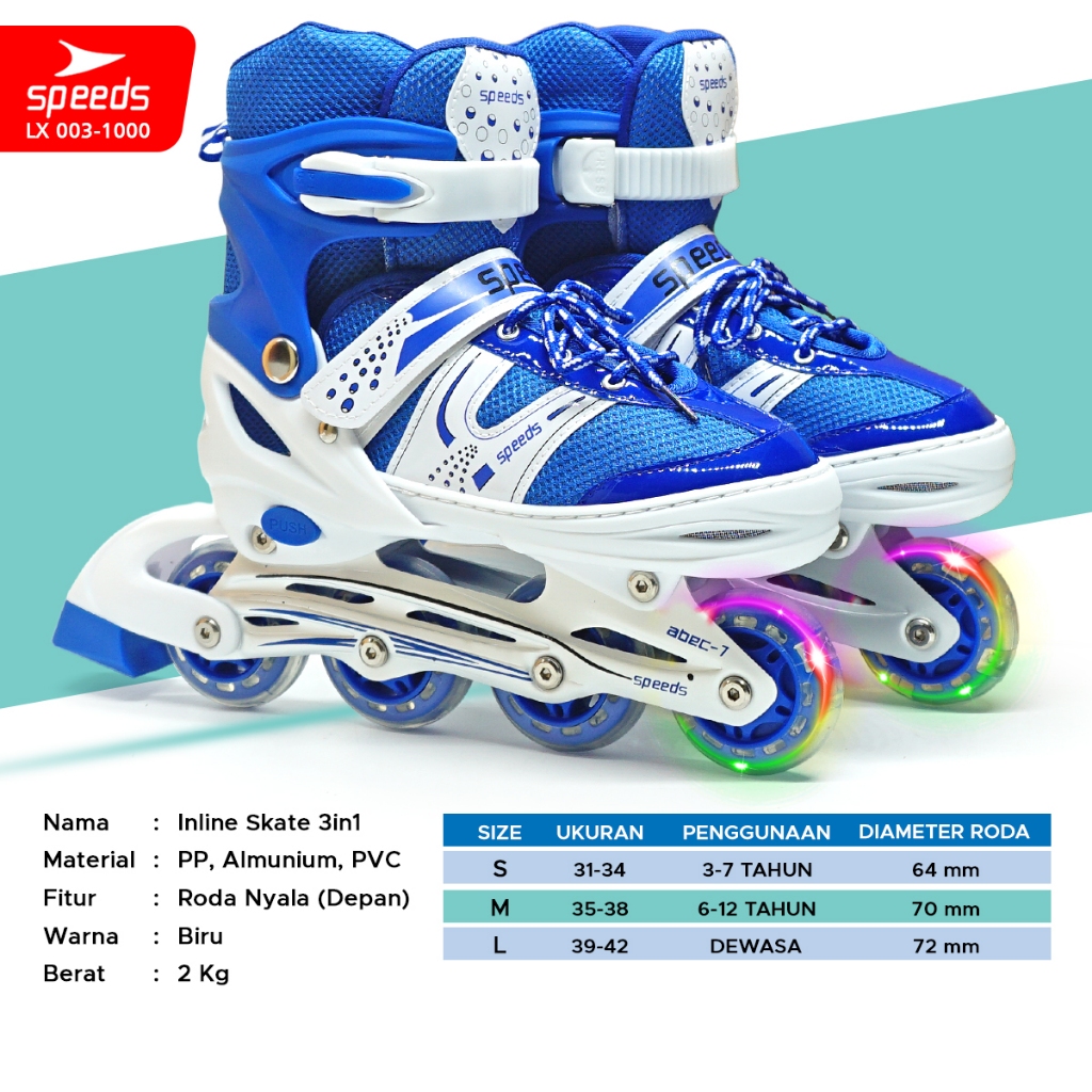 SPEEDS Sepatu Roda Anak Dewasa Power King Inline Roda Full Karet PU Nyala barang import Sepatu Roda Adjustment 003-1000