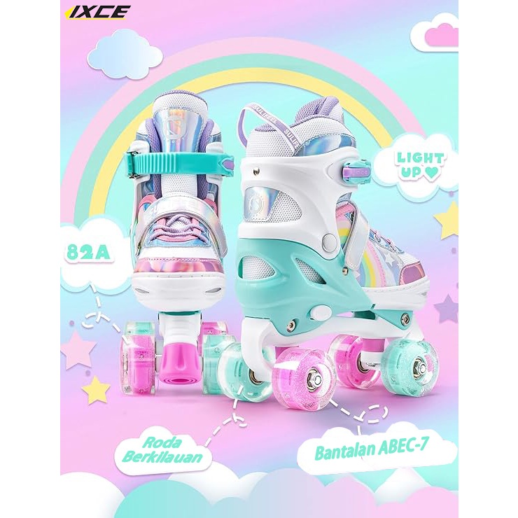 IXCE Roller Skate Anak Pemula-Sepatu Roda 4Roda Anti Jatuh, untuk Usia3-5Tahun hadiah lebaran anak