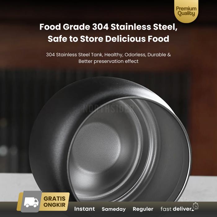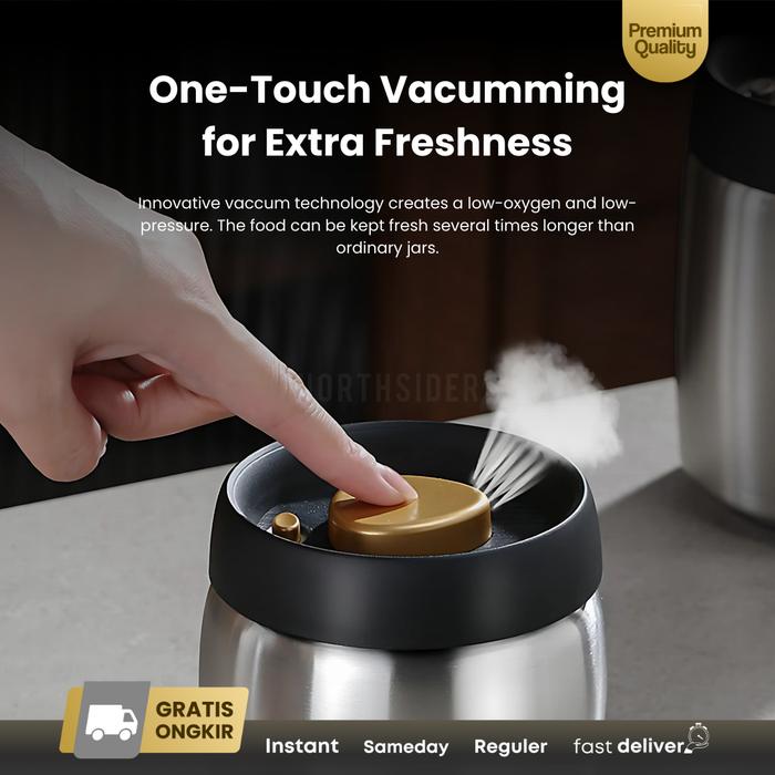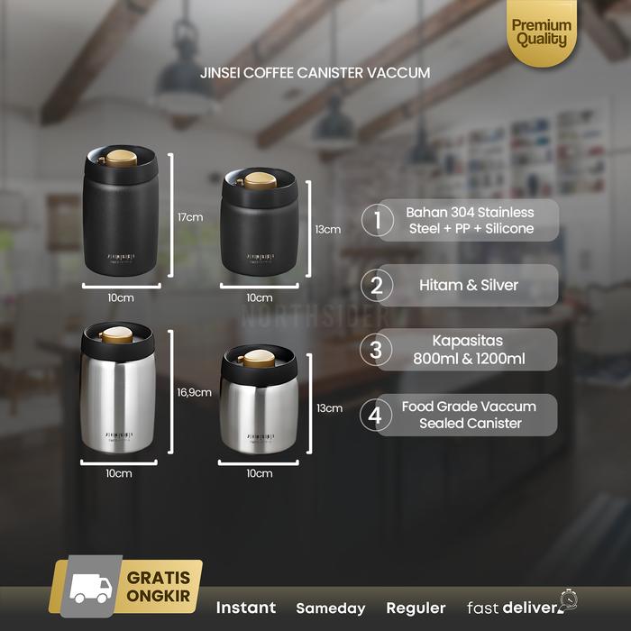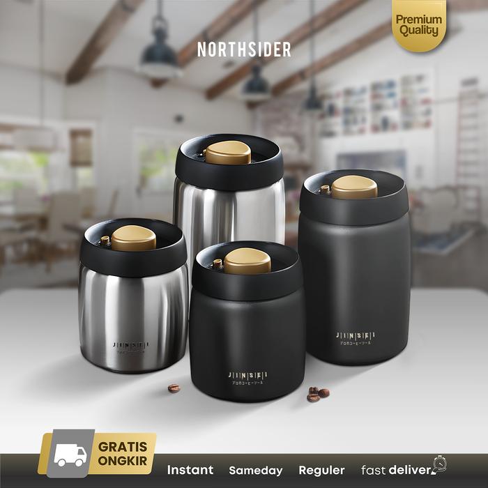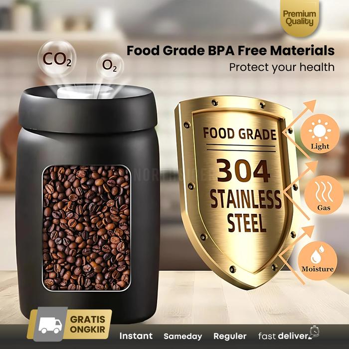 JINSEI COFFEE STORAGE CANISTER KOPI TEH TOPLES SNACK STAINLESS AIRTIGHT VACUUM BUTTON JS-A128 - 800ML, HITAM
