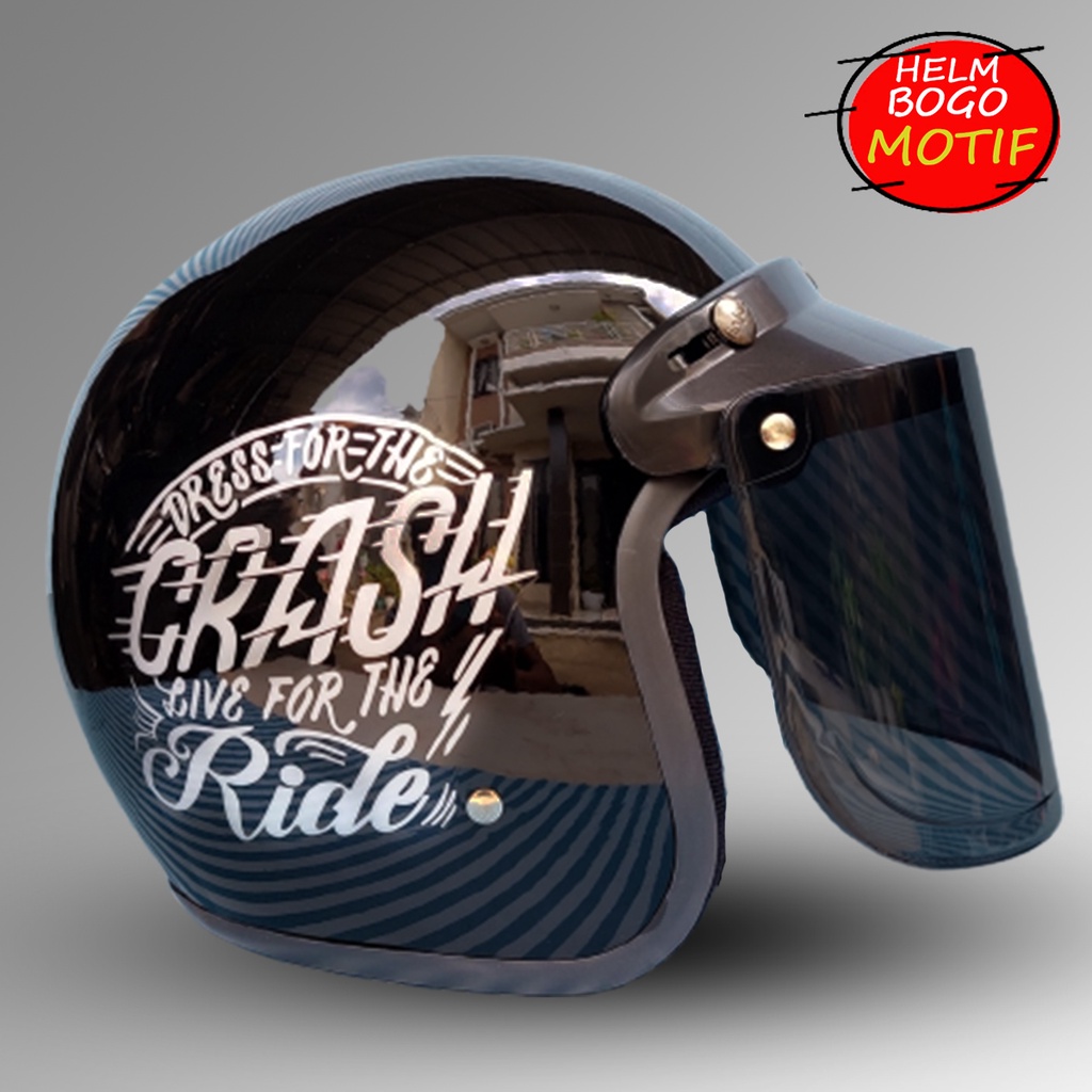 Helm Bogo Classic 4ppi SNI Motif Kaca Datar Hitam Murah Untuk Pria Dan Wanita 4ppi