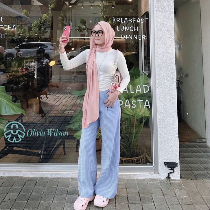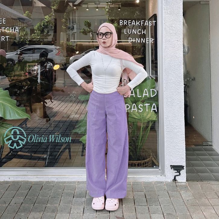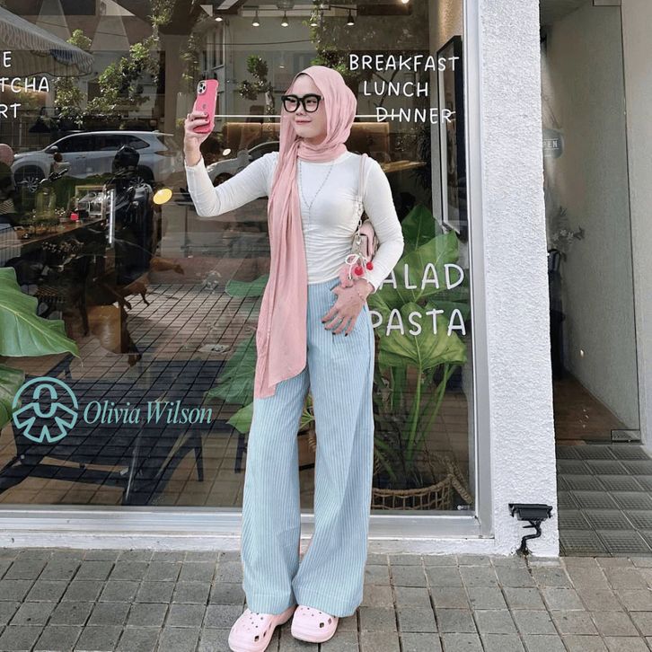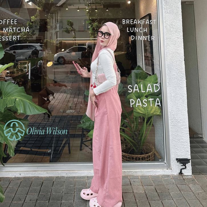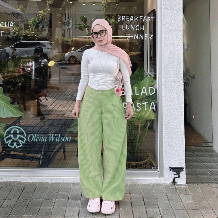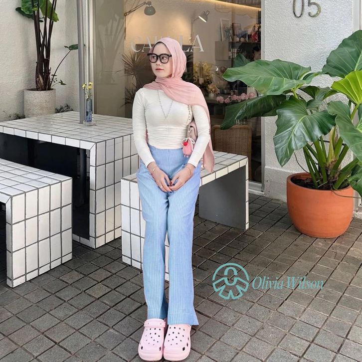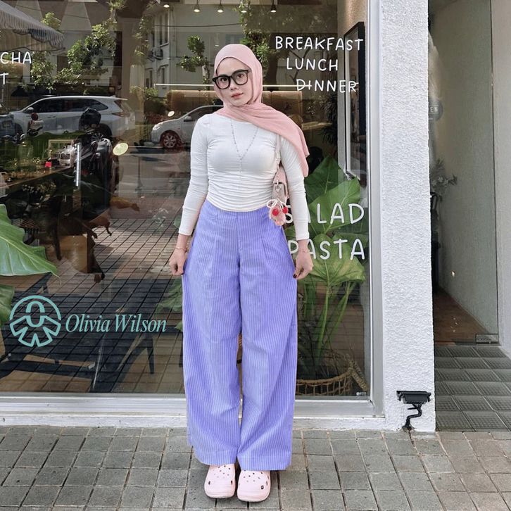Celana Panjang Wanita Kantor Kuliah Motif Garis Kulot Pinstripe City Pants