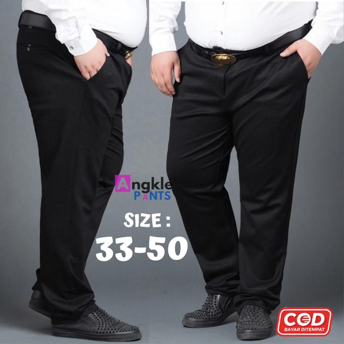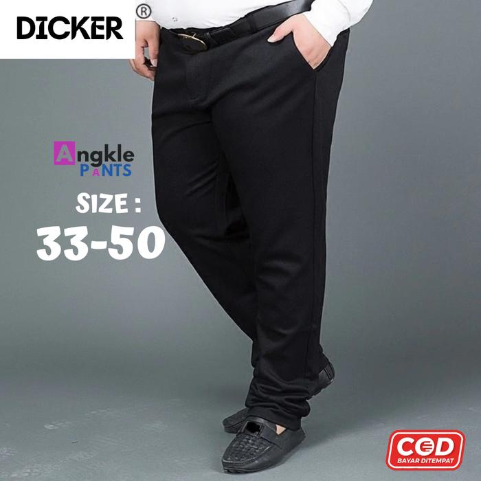 Celana Kantor Jumbo Pria Big Size Formal Bahan Twist Premium Merk Dicker Kantong Panjang Kerja Dewasa Kain Hitam Fit Kot
