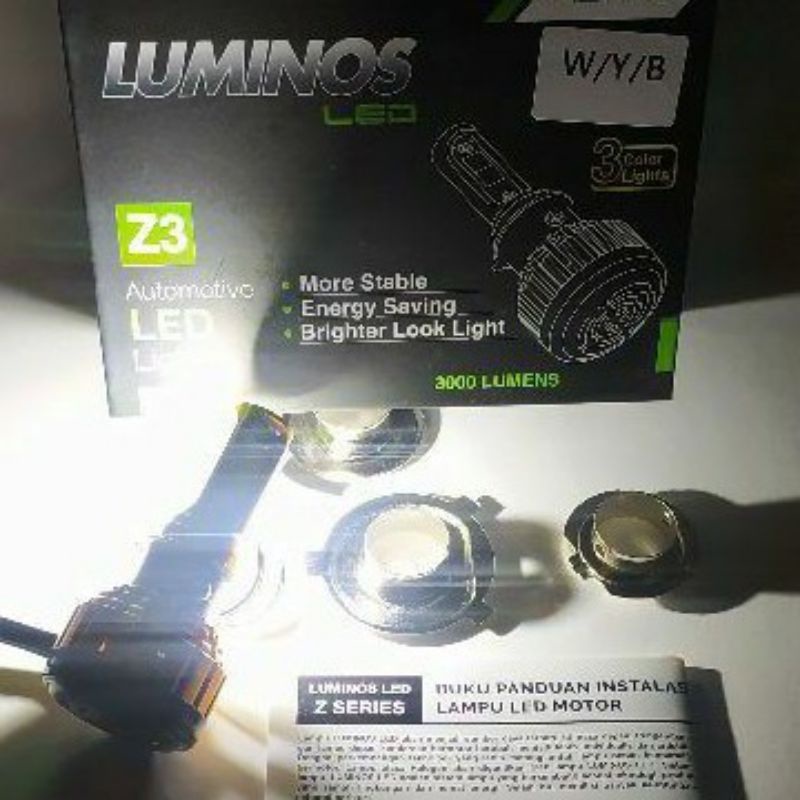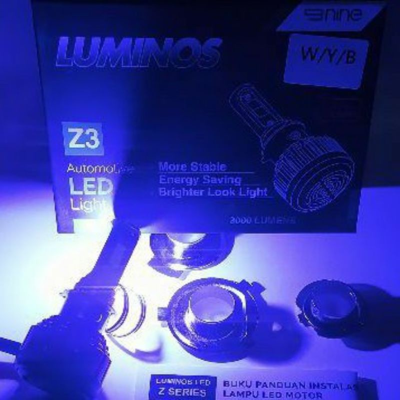 LAMPU LED UTAMA MOTOR H6 H7 H4 3 WARNA NINE LUXIMOS Z3 HI LOW SUPER TERANG 36WATT