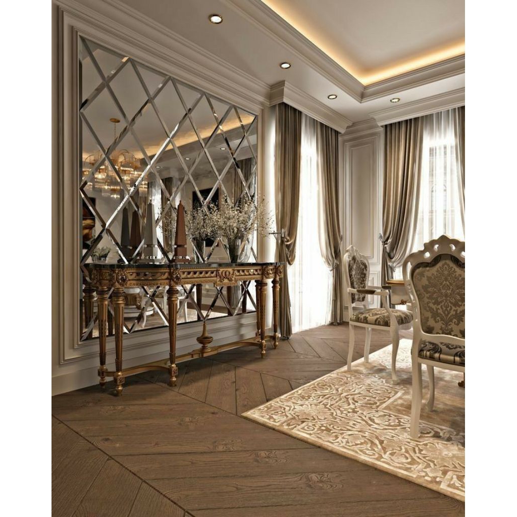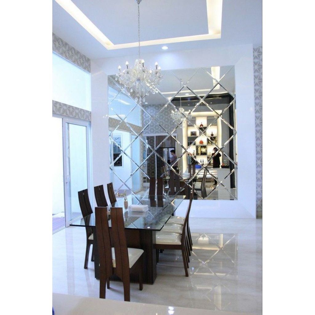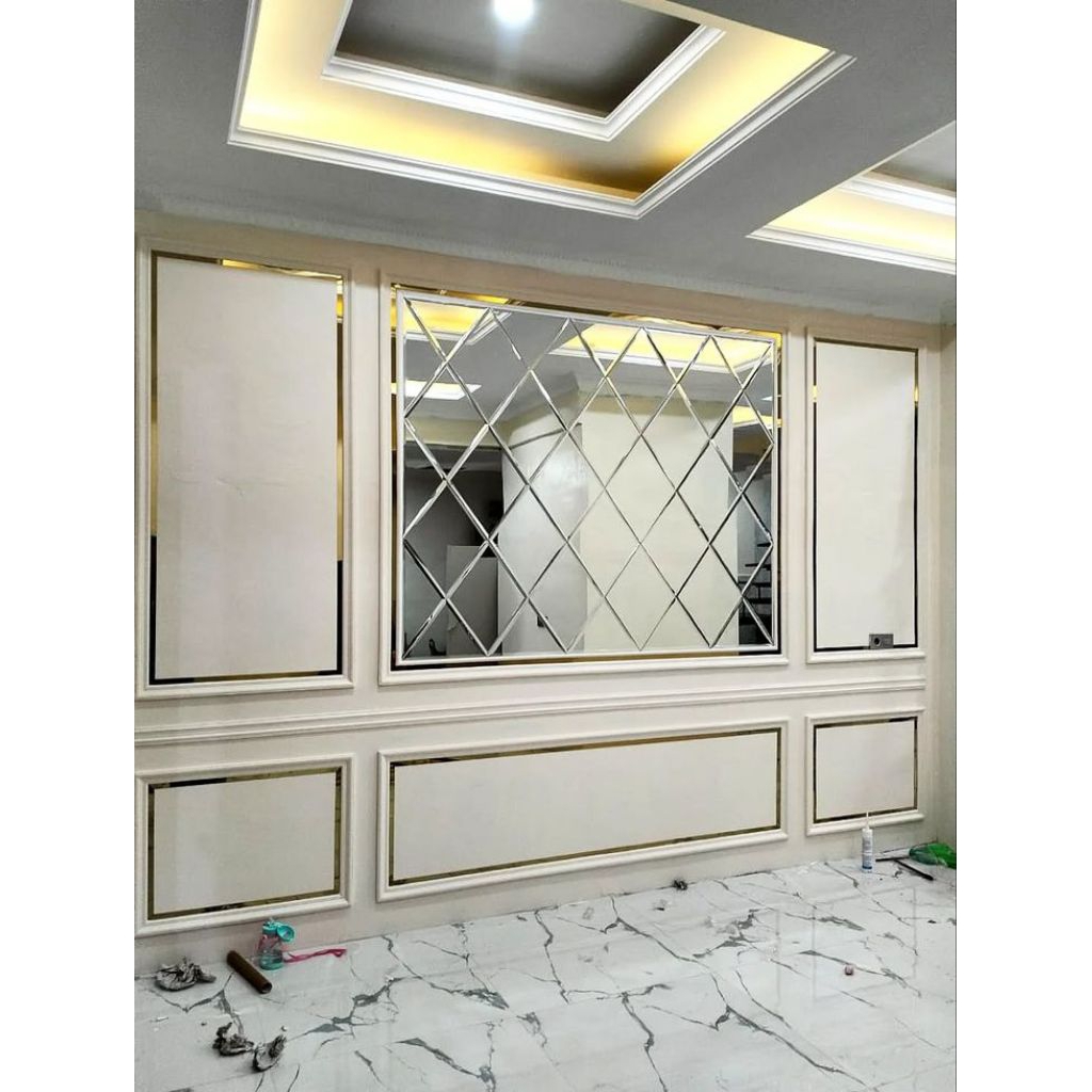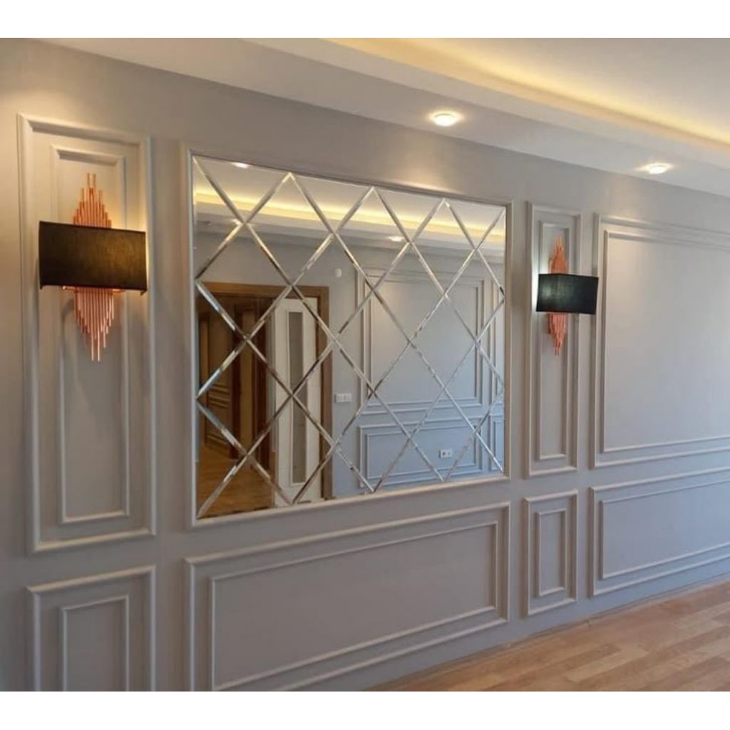 Custom Ukuran Kaca Cermin Bevel Tebal 5 Mm, Tempel Dekorasi Dinding Wall Moulding