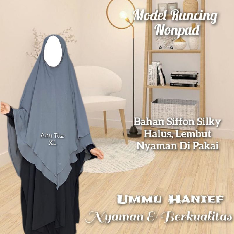 Ummu Hanief II Hijab JIlbab Bergo V Shape ( Runcing) XL - Chiffone Arab / Chiffone Silky