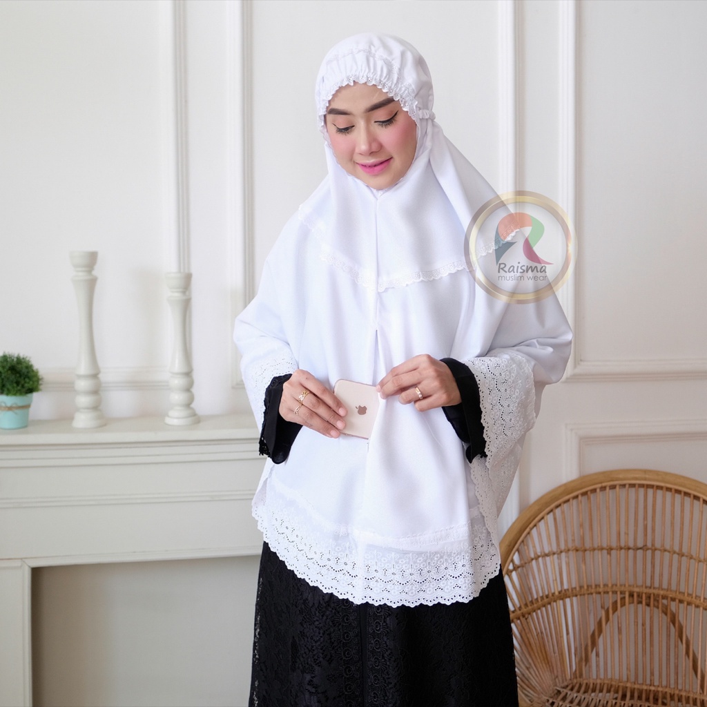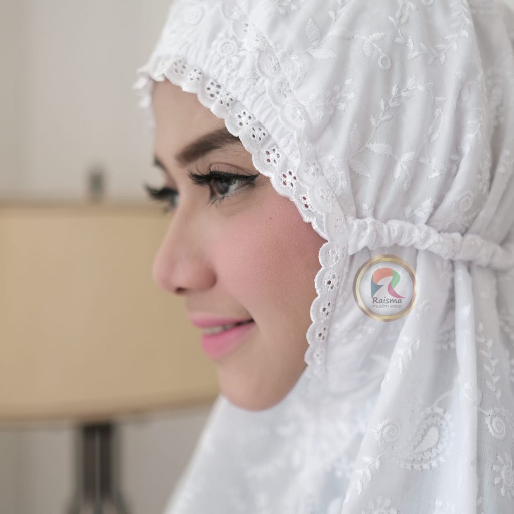 Raisma - Bergo Putih Bahan Katun Jepang Motif Bordir Cantik Dan Adem 002 Perlengkapan Umroh Wanita