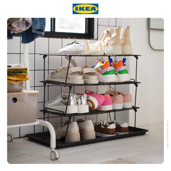 Ikea Grejig Rak Sepatu Hitam Dapat Dilipat 58X27Cm Bahan Baja 1Pcs Rak