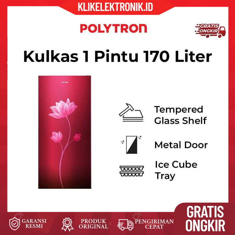 POLYTRON Kulkas 1 Pintu Metallic Series 170 liter PRB 179R