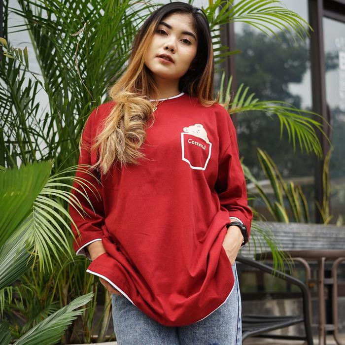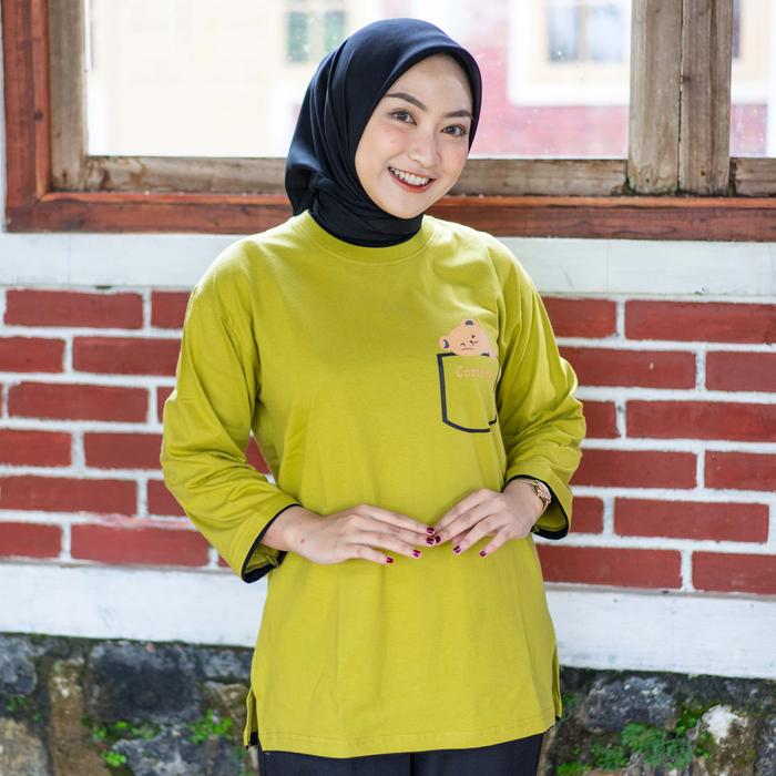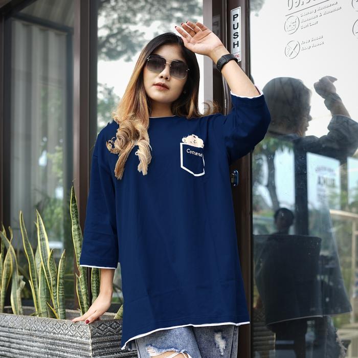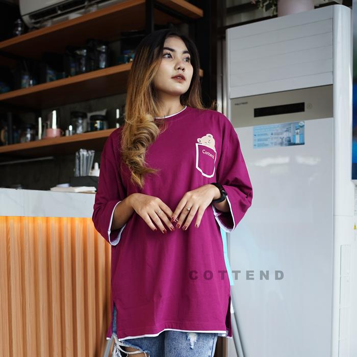 Cottend Oversized Dl Bear Baju Kaos Atasan Wanita Basic Tangan 3/4 Bahan Katun Combed Tebal Adem Nyaman Sehari Hari - Hi