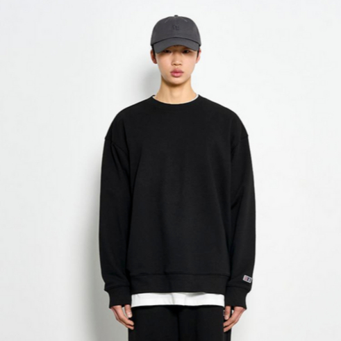 Spasmodic - Sweater Crewneck Polos Hitam Fleece Tebal Terjangkau
