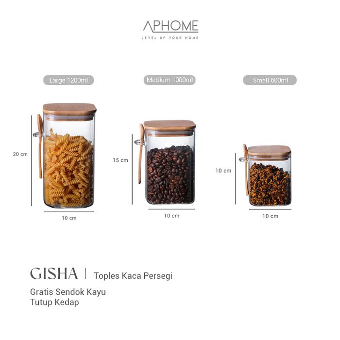 APHOME TOPLES KACA KEDAP UDARA PENYIMPANAN MAKANAN GLASS JAR FREE SENDOK GISHA - LARGE