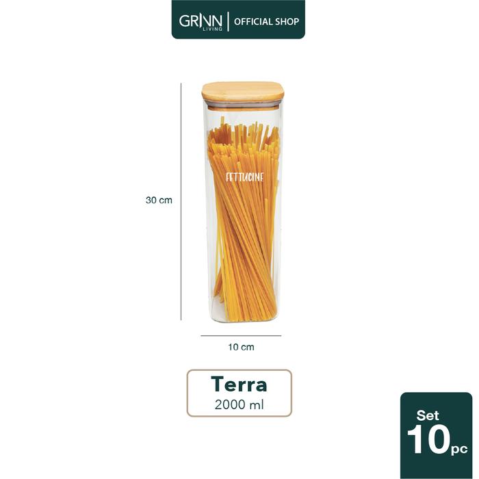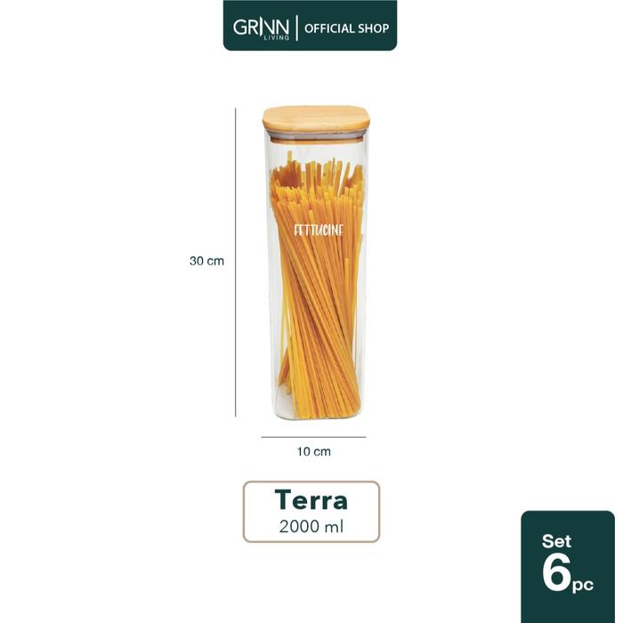 () SET PAKET-GRINN LIVING TERRA GLASS BAMBOO JAR 2000 ML TOPLES BAMBU/KAYU CANISTER/TEMPAT/TOPLES/WADAH PASTA, SPAGHTETTI,MACARONI / TOPLES 1 SET LENGKAP - 4 PCS