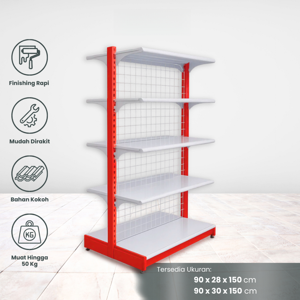 Rak Minimarket Double T 150 Gondola Display Supermarket Etalase Jualan Anti Karat