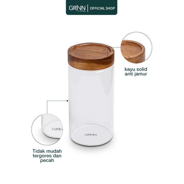 () GRINN LIVING NAYA JAR /TOPLES KACA KEDAP UDARA / TUTUP KAYU AKASIA UNTUK TEMPAT SPAGHETTI / PASTA KUE SERI LARGE AESTHETIC - 1300 ML