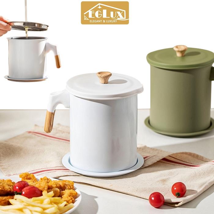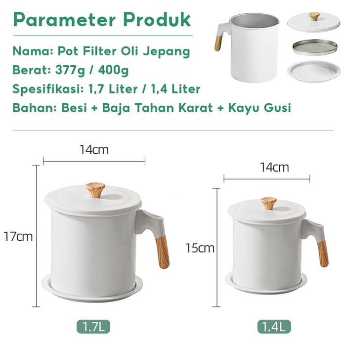 OIL POT/TEMPAT MINYAK STAINLESS STEEEL TEBAL 1.4L/1.7L BESAR KAPASITASNYA UNTUK MINYAK GOREMG TEMPAT SARINGAN MINYAK - PUTIH 1.4L