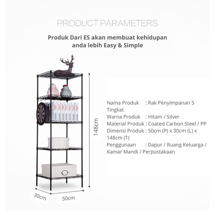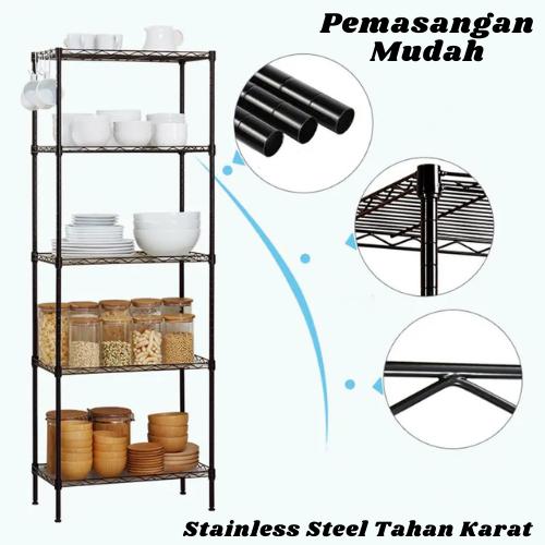 Ollahom Rak Serbaguna Rak Dapur Tingkat Rak Kantor Rak Susun Rak 5 Tingkat - 3 Susun Hitam