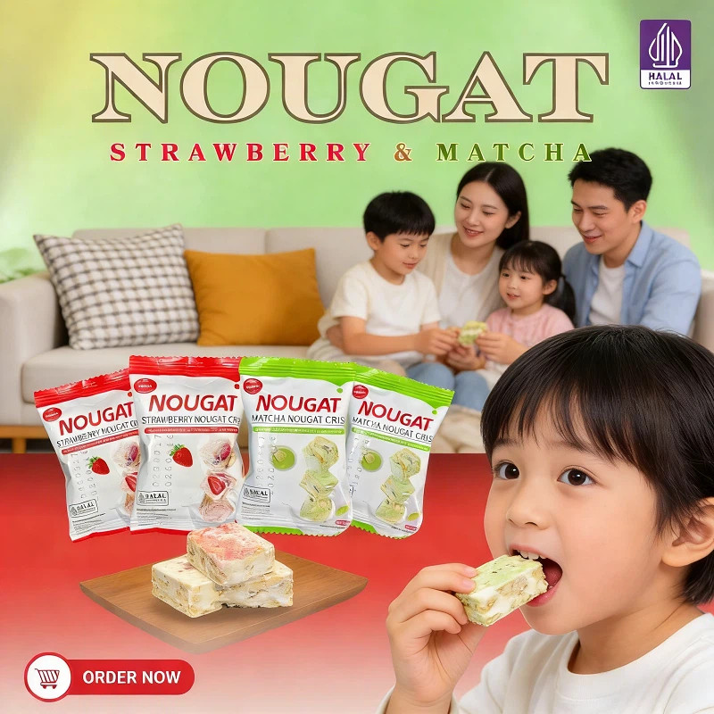 Nougat Crisp 28pcs 280g – Camilan Renyah & Lembut, Mix 4 Rasa Favorit, Snack Premium Halal, Leleh di Mulut, Cocok untuk