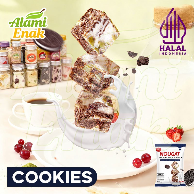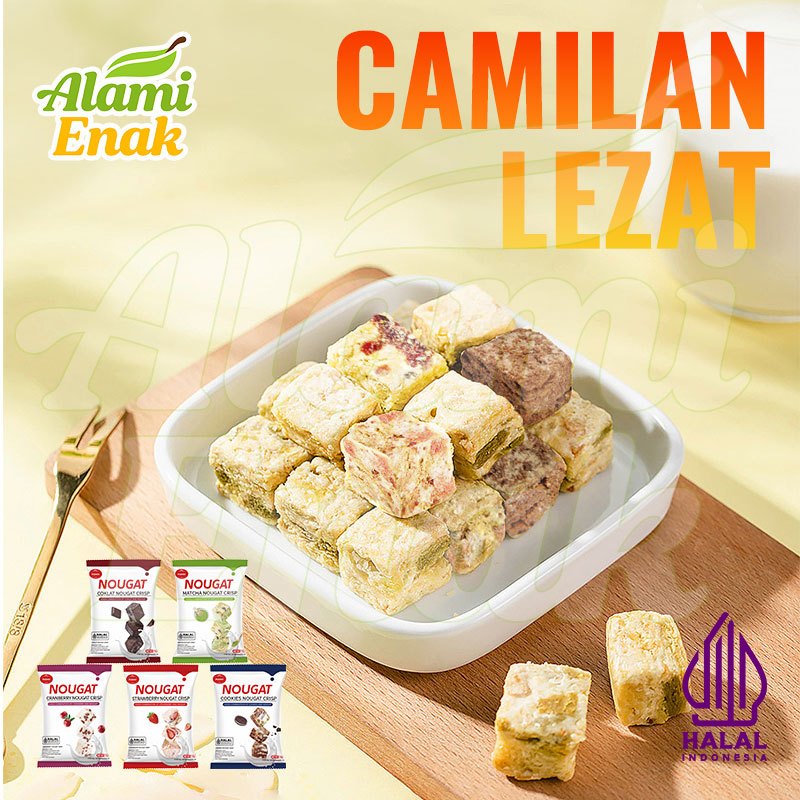 Nougat Crisp Snack Premium Halal - 5 Rasa Cranberry,Matcha,Coklat,Cookies,Strawberry 280g(28Pcs) Renyah Enak