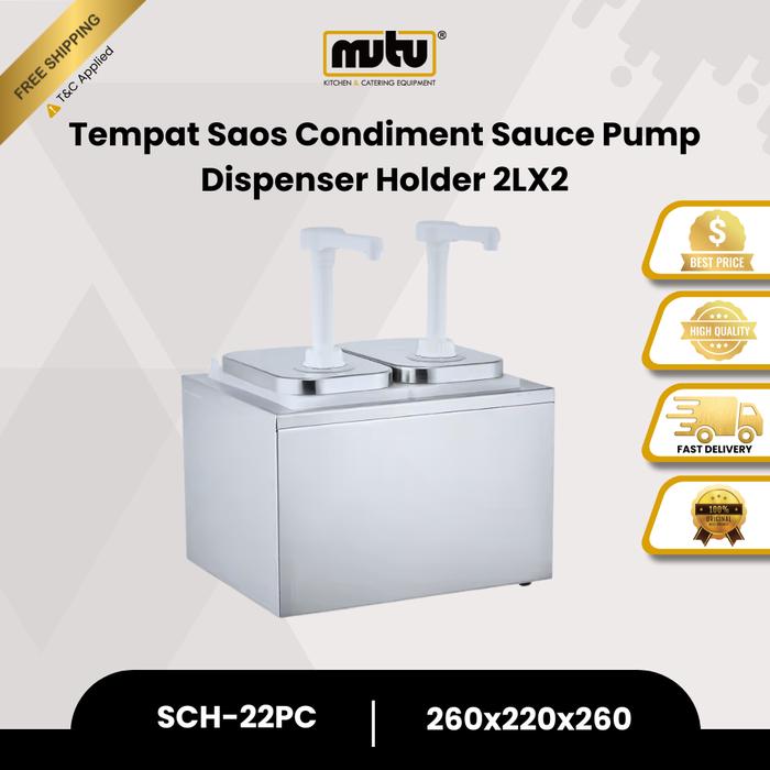 MUTU ALAT POMPA SAOS WADAH SAUCE 2 PUMP CONDIMENT DISPENSER STAINLESS SH22PC