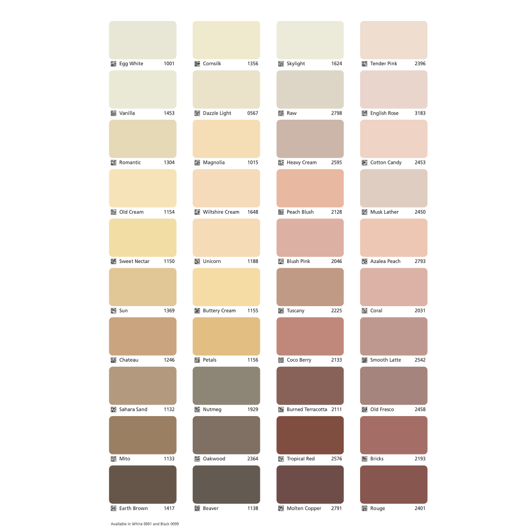 WARNA LAIN CHAT DULU, S2040-Y20R, ETERNAL BLUE 4108, UNICORN 1188, CHI 7236, WHITE/PUTIH, PIRATE 5306, 10290 SOFT TOUCH, YELLOW STONE 2206, MATRIX 9913, DAZZLE LIGHT 0567, MORNING FOG, GRASS, ROYAL BLUE 4224, 2520, MUESLI 1421, NAVAJO WHITE 1075, EN LILY 10406, CITRONELLA 1633, PANGOLIN 2061, TEA LEAVES 1938, BEACH HONEY 1122, JAZZ GREY, SILVER GLASS 1268, COCO BERRY 2133, SANDSTONE 2496, AMBER RUSH 2613, SPACE GREY 5255, APPLE FROST 7270, IVORY WHITE 0566, BETEL, ATLANTIC POOL 5206, BRILLIANT WHITE, LOTUS ROOT, DESERT SAND 1037, FØHN 1131, VIOLET PEACE 4326, S2050-R90B, ROMANCE PINK 2015, S2020-R, VICTORIAN PURPLE, RUSSET 2096, 2542 SMOOTH LATTE, WILTSHIRE CREAM 1648, URBAN LIGHT 4507, DECO BLUE 4477, COCO BERRY, MONSOON CLOUD 0562, BURNED TERACOTA 2111, SKY SAFARI 4098, TUSCANY 2225, 1111 SINAI, VIOLET DREAMS 4488, 0597 BLUE DOME, WHITE HEATHER 8303, SENSUAL TOUCH. 0767, ATHENIAN BLUE 6128, HANZOU 7324, 7061, EMPIRE 0520, MISTY GREY 1143, LAKE VIEW 5225, GINGKO 10031, LIVELY RED 20143, MICHA MINT 7381, ADELE 7249, SUN 1369, BLUSH PINK 2046, ISLAND TAN 2090, APRIL PINK 2091-70, 7391 GREY MATTER, S2005-Y70R, BUTTERY CREAM 1155, CYPRESS 7040, MIDNIGHT 3165, SANDBEIGE 1939, HINT OF GREEN 7001, PEGASUS 10399, GREY STONE 4512, BASE-A (PUTIH), MISTRAL 4011, BRUSHED GRANITE 3230, WHITE MALVA 3144, SHALLOW WAVE 4094, 7060, TEAL BEIGE 1966, SOYAMILK 1105, APRIL GREEN 8109, MACCHIATO 1359, TENDER GREEN 6351, 1006 SAND PEBBLE, SATIN BEIGE 8011, BLUE LAGOON 4164, 7044 MORGAN TONE, ALMOND BEIGE 10966, PALE MOSS S2020-B90G, SOFT 1276, TWILIGHT, VANILLA 1453, HOUR GLASS 1250