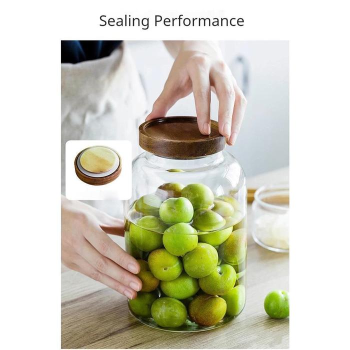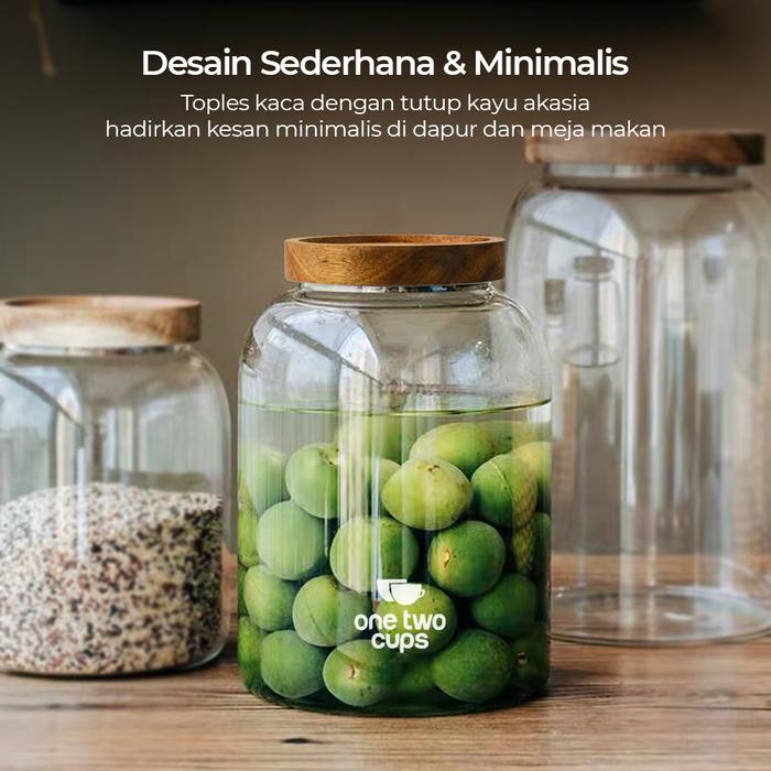 TOPLES KACA BENING ONE TWO CUPS STOPLES WADAH PENYIMPANAN MAKANAN TUTUP KAYU KEDAP UDARA - 1.86L