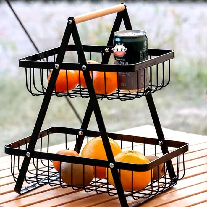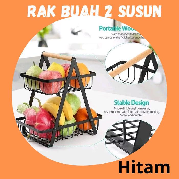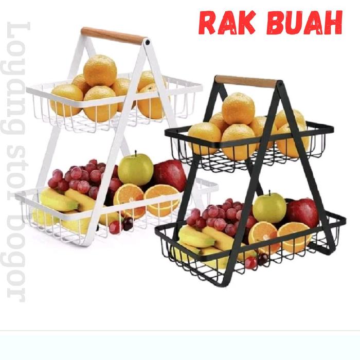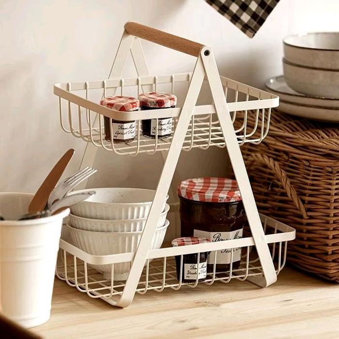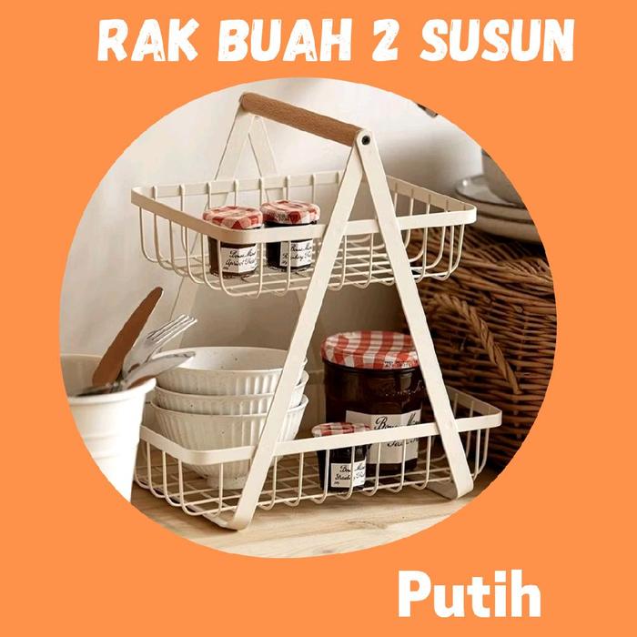 Rak Buah Estetik Segitiga Sebaguna Besi 2 Tingkat Kayu Putih - Putih