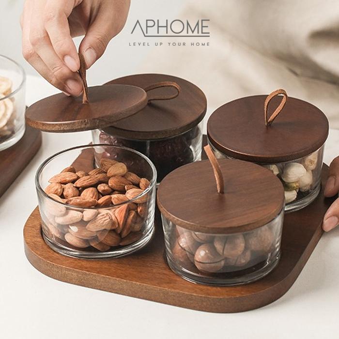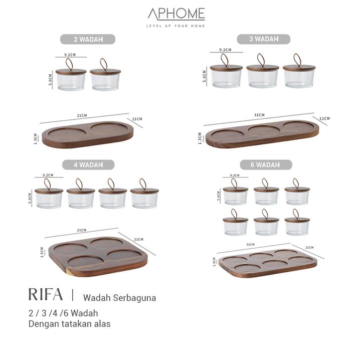 APHOME TOPLES KACA TUTUP KAYU WADAH PENYIMPANAN BUMBU SERBAGUNA DENGAN ALAS KAYU KONTAINER MAKANAN RIFA - 6 WADAH