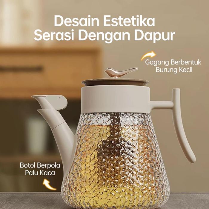 SOSEKI BOTOL MINYAK GORENG, KACA TEMPAT MINYAK 800ML, WADAH MINYAK GORENG DENGAN KUAS MINYAK
