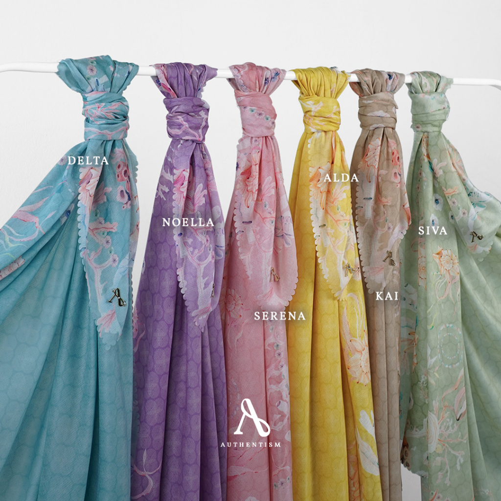 AUTHENTISM ID | Oceanna Series - Kerudung Segi Empat Motif Sheen Voal Lasercut Premium