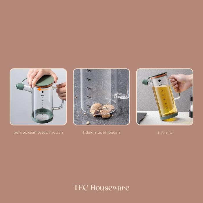 【TEC】MILO TEMPAT PENYIMPANAN MINYAK WADAH TUANG MINYAK MASAK OIL BOTTLE BOTOL MINYAK KACA - HANDLE WHITE, 550ML
