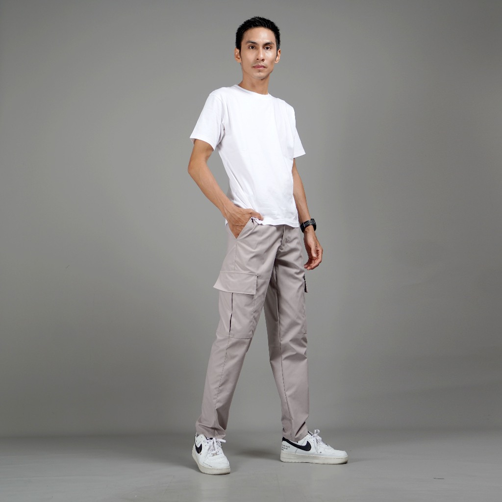 SARWAGATAWARA Celana Cargo Panjang Pria Basic Outdoor Green Army Slimfit
