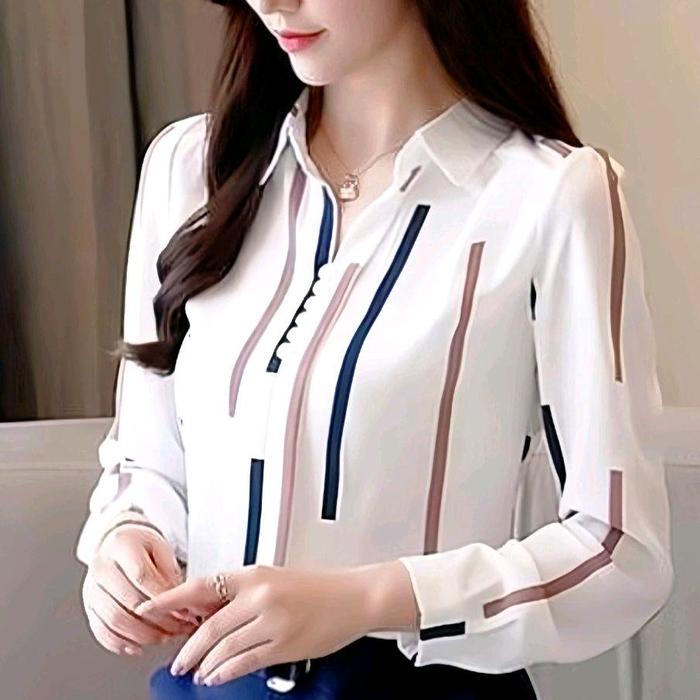 Blouse/Baju/Kemeja/Atasan Wanita Terbaru 2024 Kekinian Kancing Tangan Panjang Mewah Elegan Lembut Shakila Formal Nyaman
