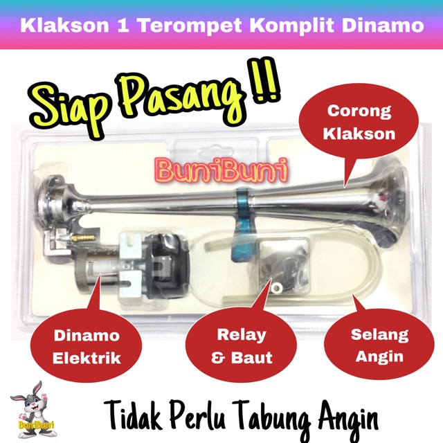 Klakson Terompet 1 Corong Komplit Dinamo Elektrik Mobil 12 Volt & Truk 24 Volt - Klakson Angin Dinamo Mobil 12V - 24V (G