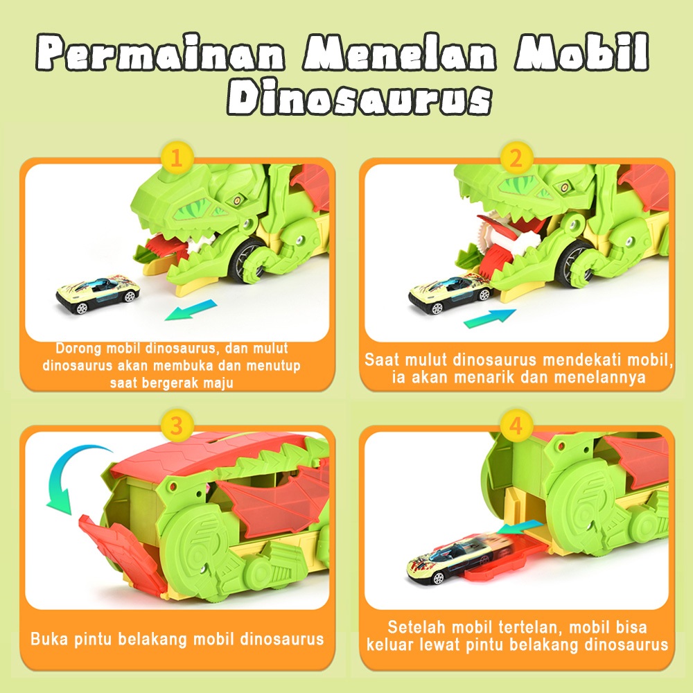 COCOTOY [Free 6 Mobil Car] Mainan Anak dinosaurus Deformed Track Truck Mobil Anak Dinosaurus Mobil Dino Truk Mainan
