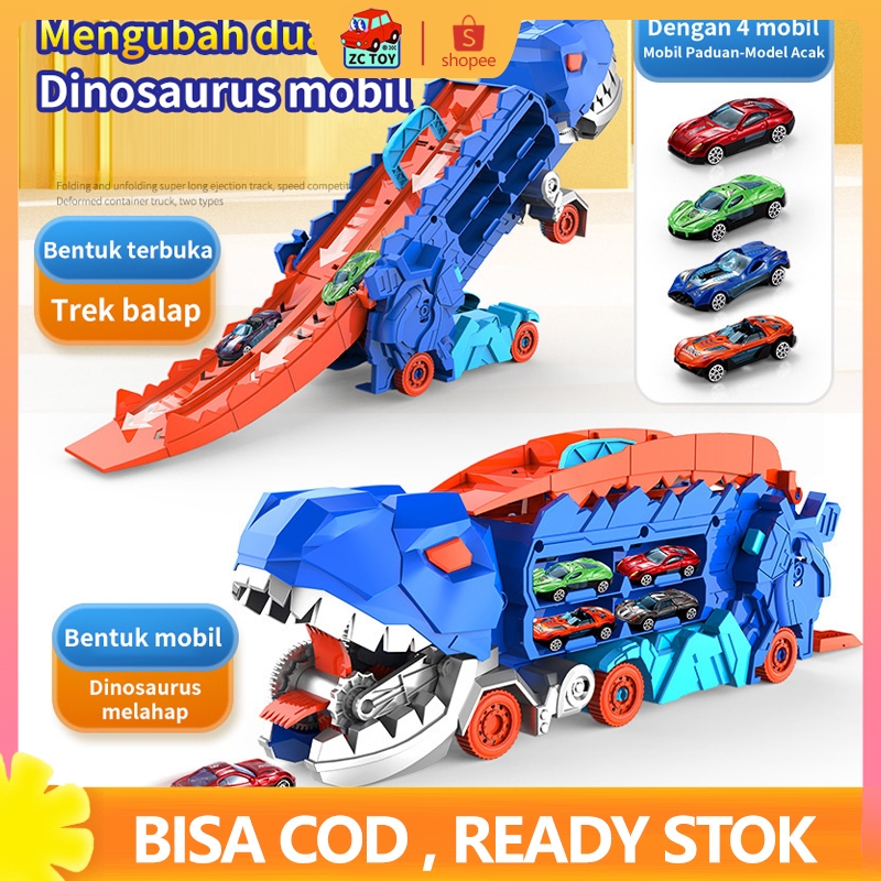 ZCTOY Transformed Dinosaur Mainan Truk Mobil Dengan Mobil 4PCS Alloy Dino Transport Car Gift Hadiah Ulang Tahun Anak unt
