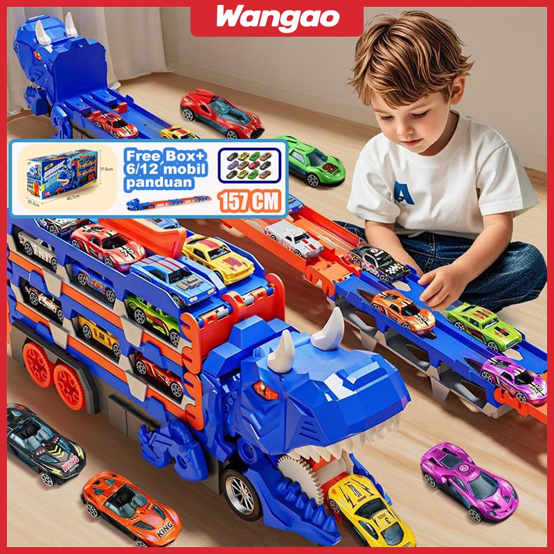 WANGAO [157CM] Mainan Mobil Dinosaurus Racing Dengan Trek Balap Lipat Catapult Deformasi Deformed