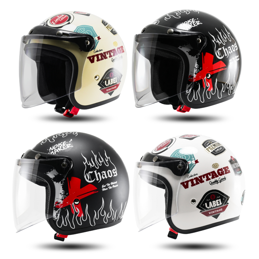 Helm Bogo Retro Motif One Piece Helem Pria Wanita SNI Helm motor Kaca Datar