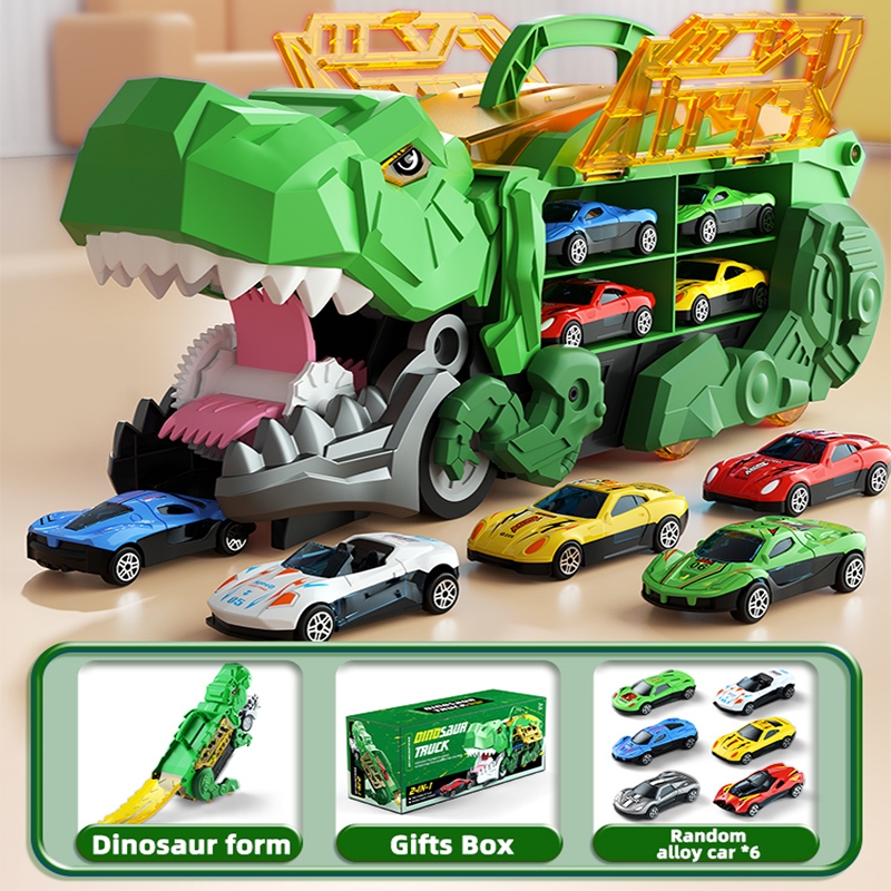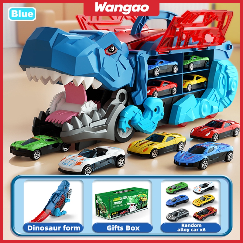 WANGAO [Free 6 Mobil] Mobil Truk Mainan Deformed Dinosaur Track Truck Mobil Dino Deformasi Mainan