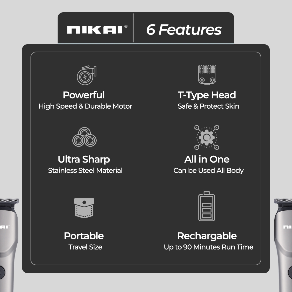 NIKAI Trimmer Rambut Elektrik Shaver Alat Cukur Jenggot Kumis Tanpa Kabel Tahan Lama Presisi Multifungsi Barbershop Tajam Tahan Lama Portable N-7493 N-7491