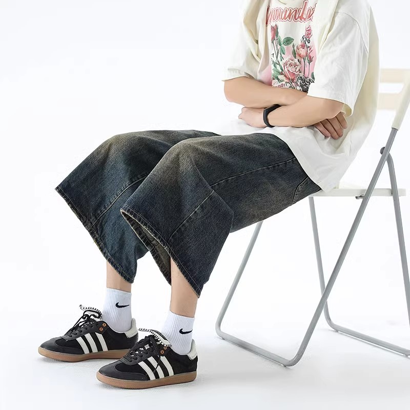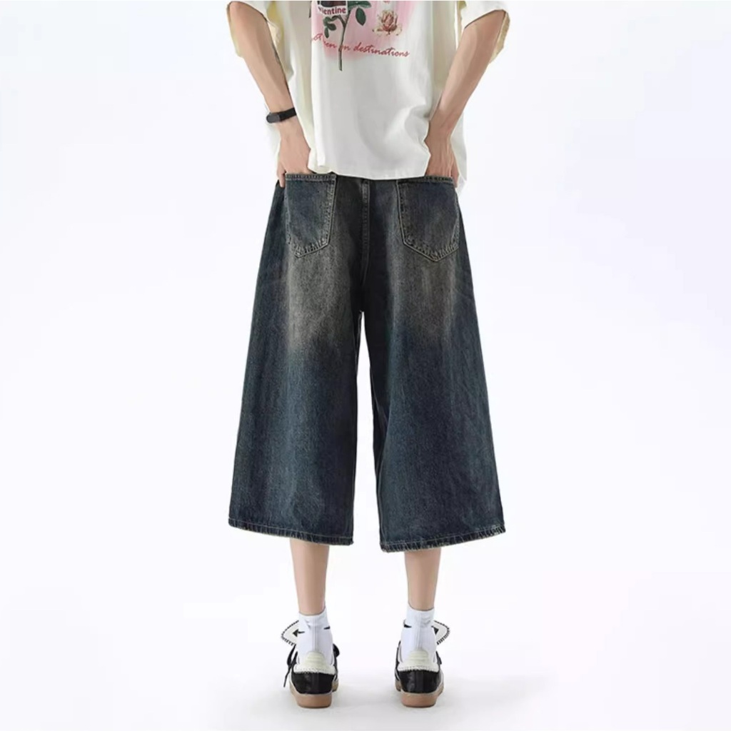 KeyBoy celana jeans pria baggy panjang straight korean style casual loose pants biru pinggang karet celana denim fashion dewasa cowok