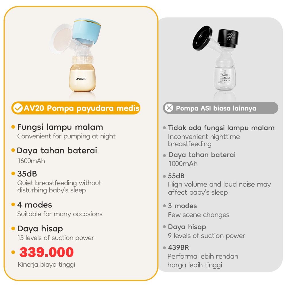 AVINIE PPSU Pompa Asi Elektrik Portable Tanpa Kabel Otomatis Fungsi Lampu Malam BPA Free AV20