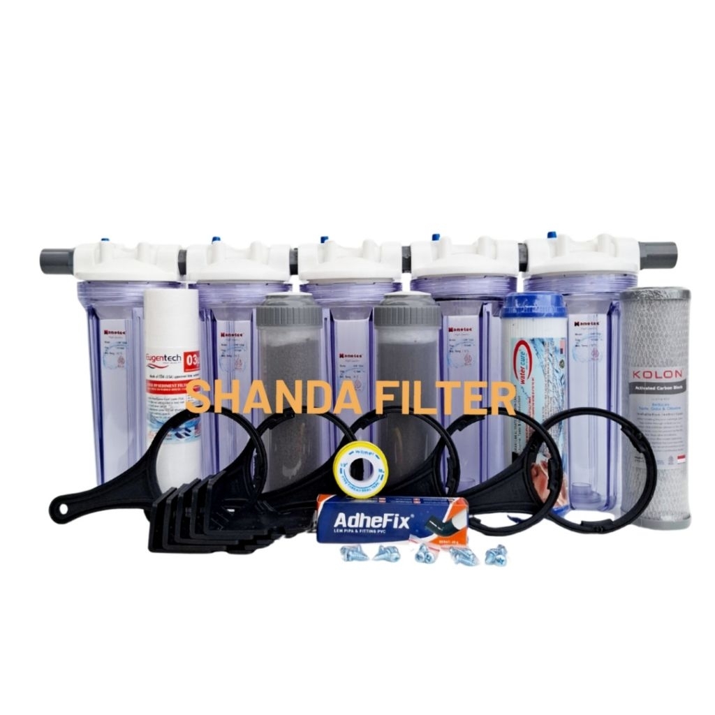 Paket Filter Air 5 Tahap Untuk Air Sumur / Bau / Keruh (Clear 10" Drat 3/4" SMPGC)